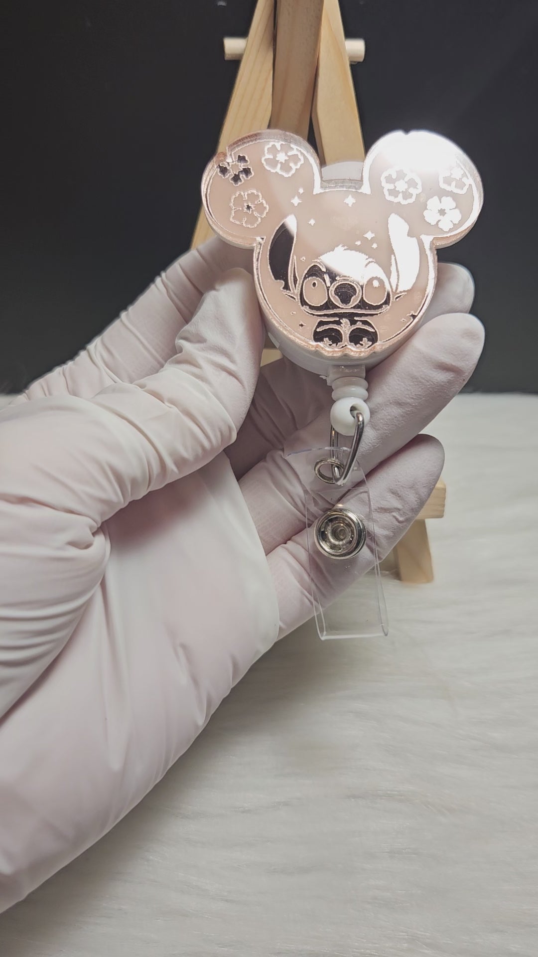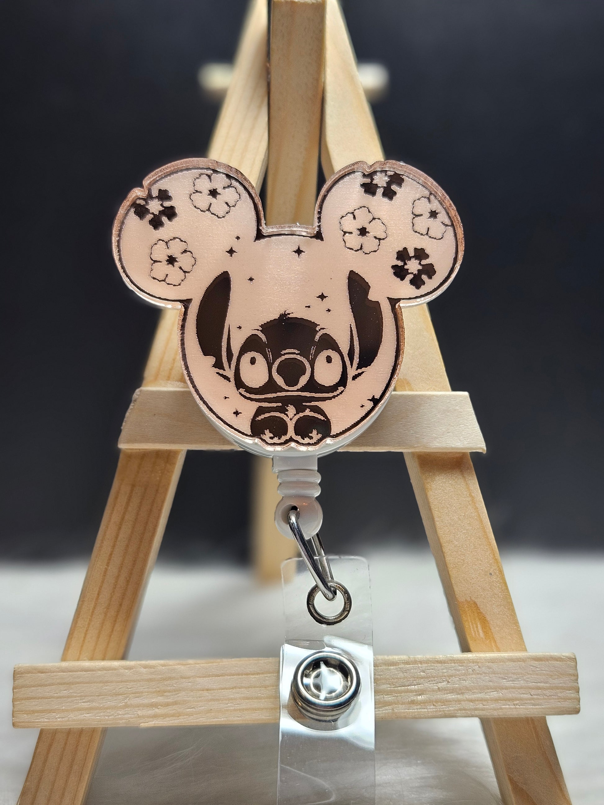 These badge reel toppers are made with engraved rose gold mirrored acrylic. It is scratch resistant and the engraving is permanent.