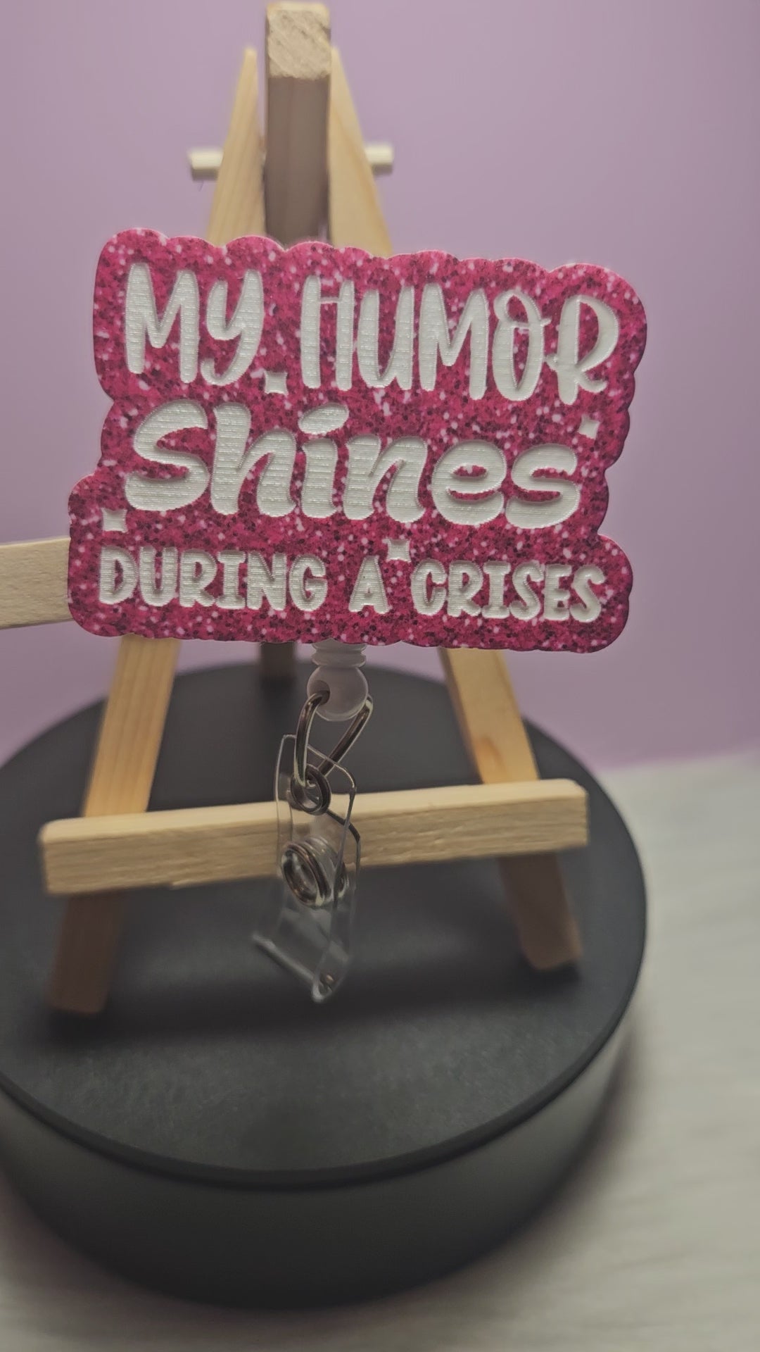 The badge reel topper is made with glitter acrylic. The design is engraved which is permanent and will not peel off or scratch off.