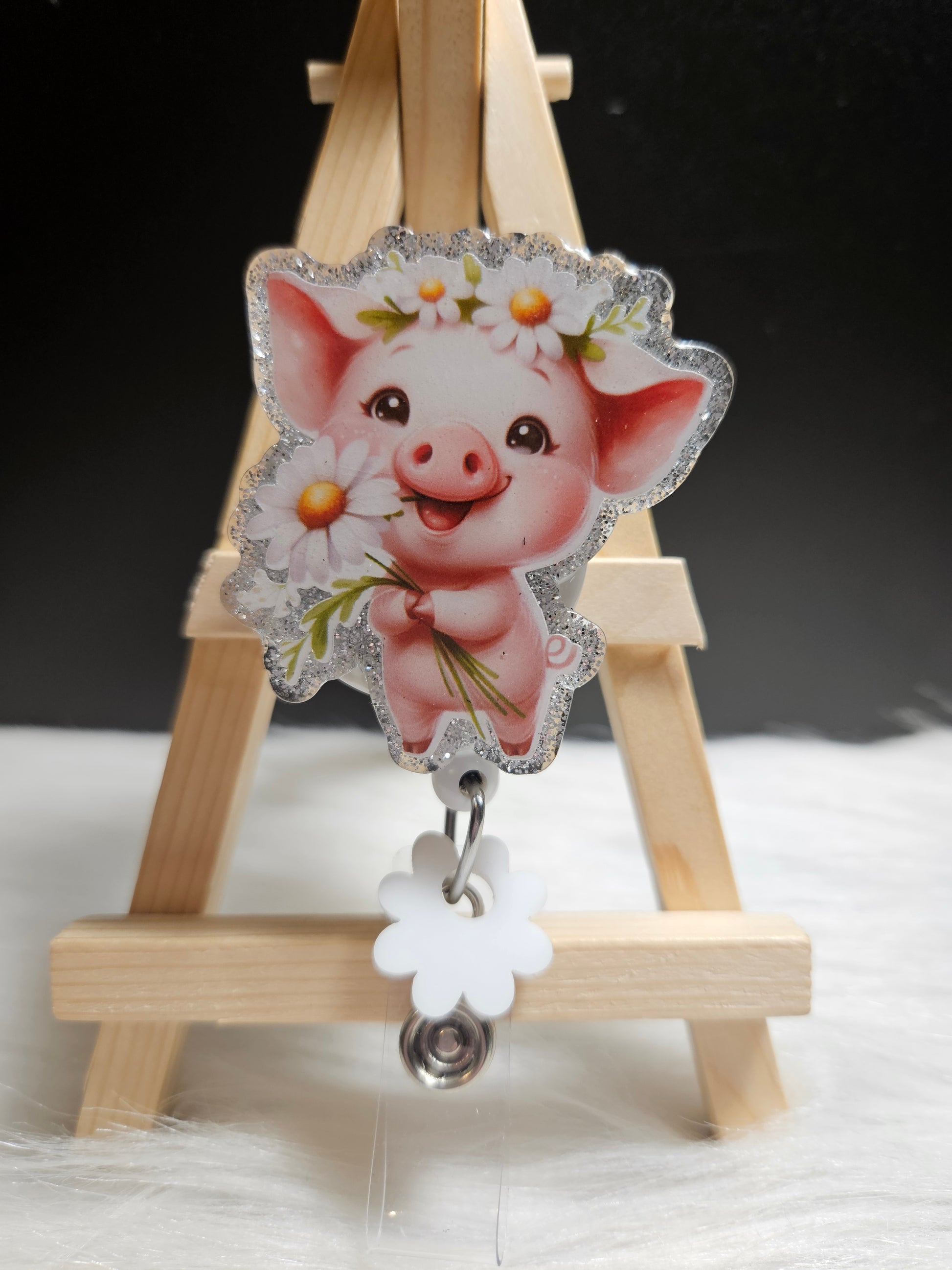 Pig With Daisy Badge Reel