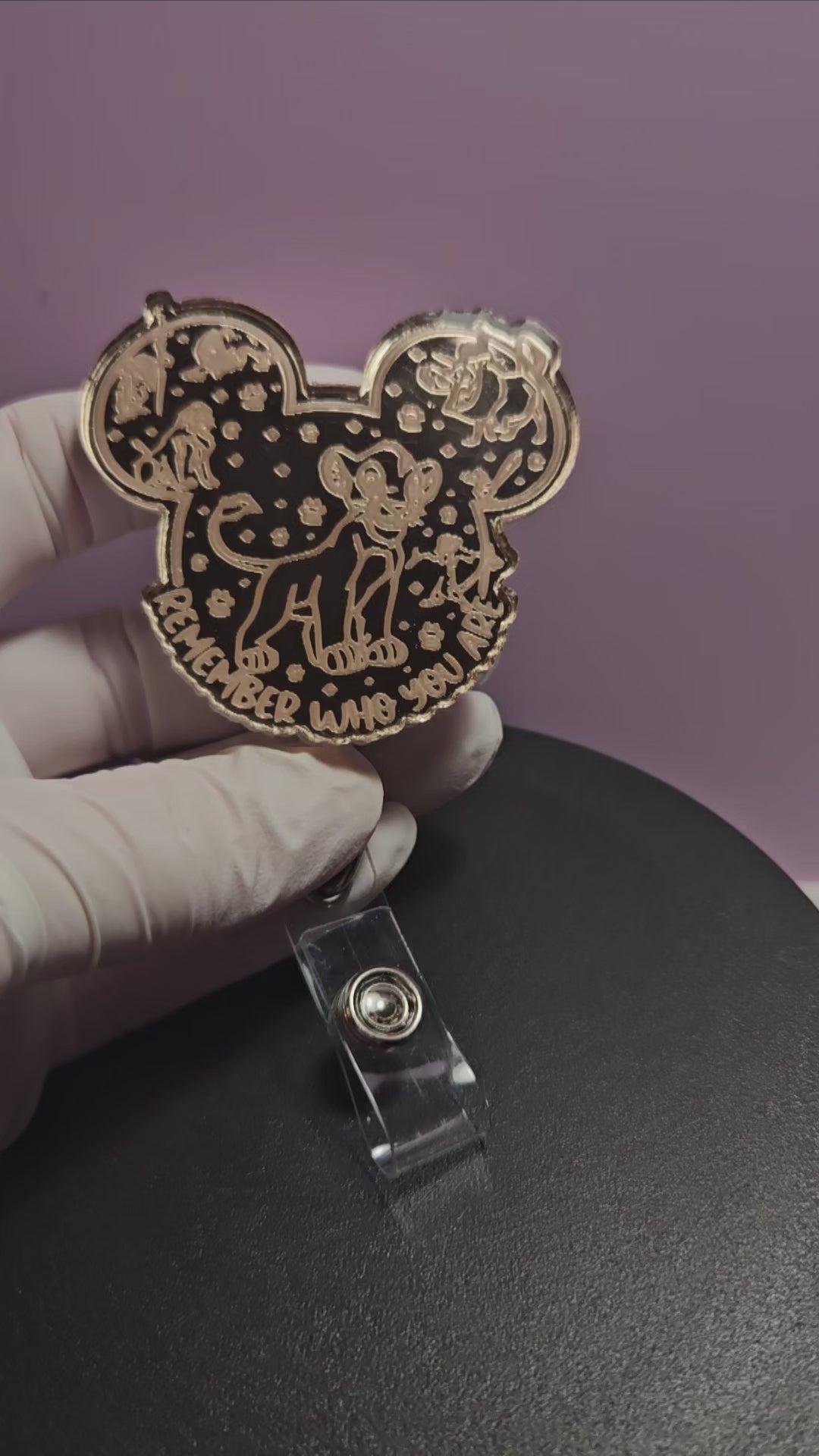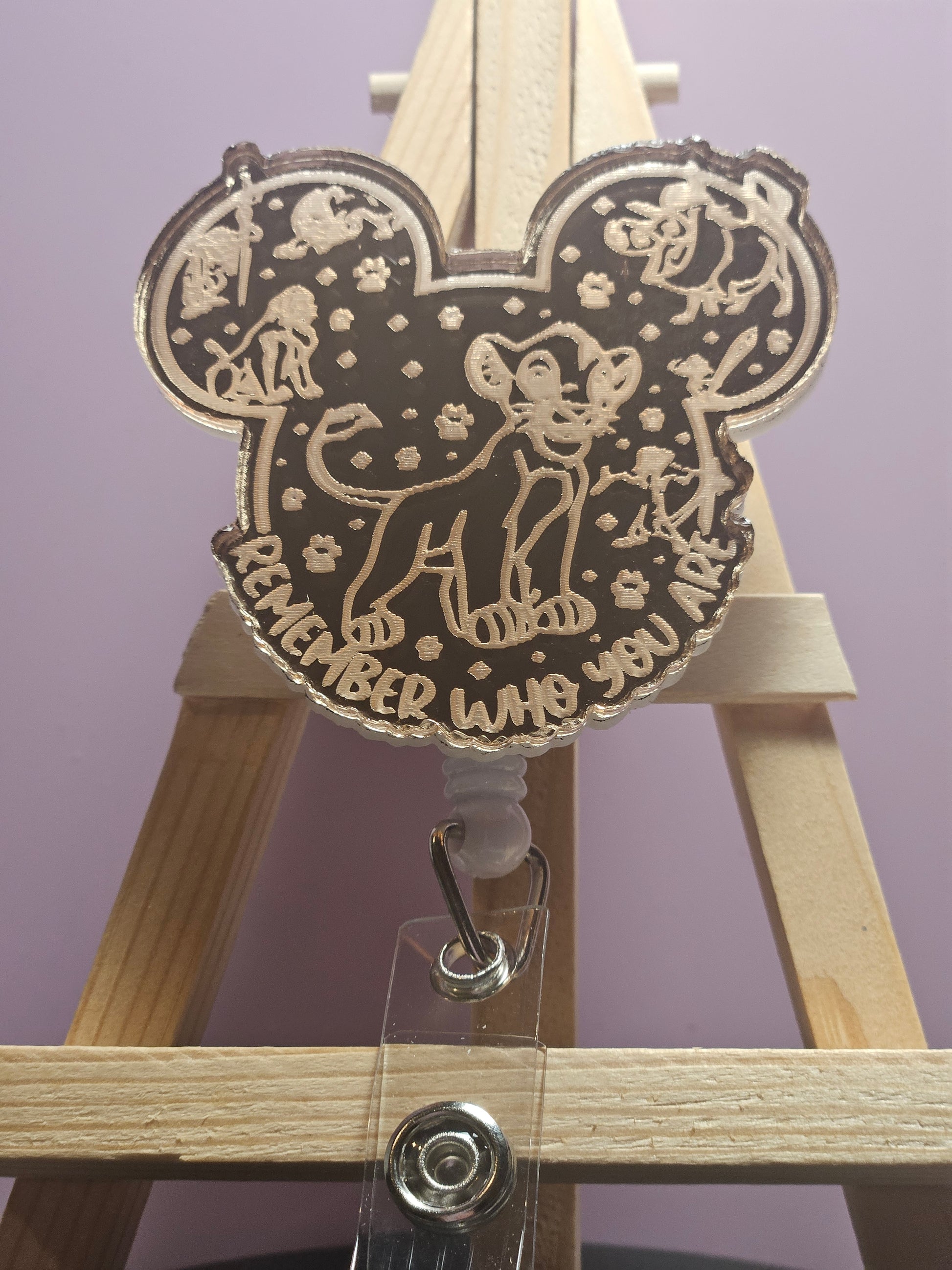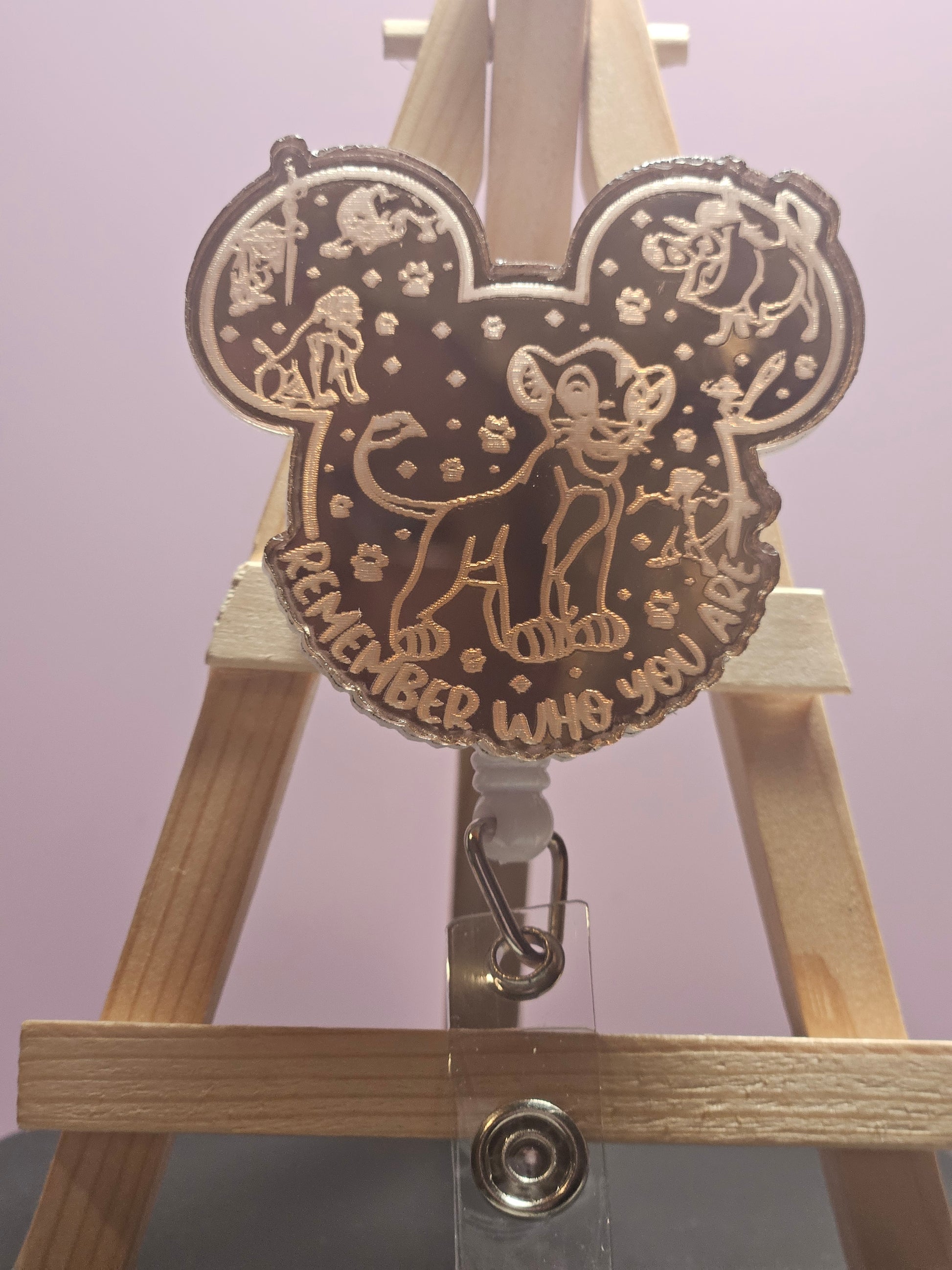 These badge reel toppers are made with engraved rose gold mirrored acrylic. It is scratch resistant and the engraving is permanent.